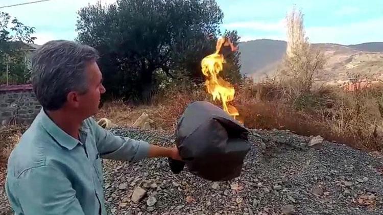 Su kuyusu sondajında gaz açığa çıktı; poşete doldurup, çakmakla deneme yaptılar