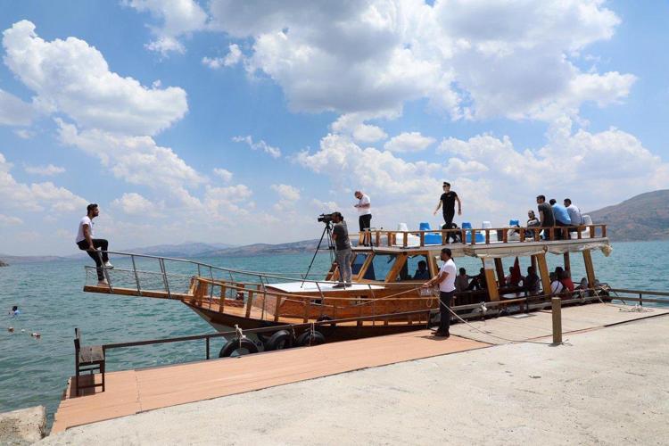 Elazığ'ın Sivrice ilçesindeki Hazar Gölü'nde su seviyesinin düşmesiyle birlikte 'Batık şehir' olarak bilinen tarihi yerleşim yerinin kalıntıları ortaya çıktı. Su yüzeyinde görülen surlar ve kale, ziyaretçilerden ilgi görüyor.