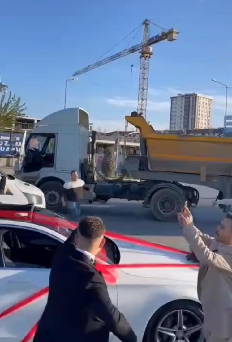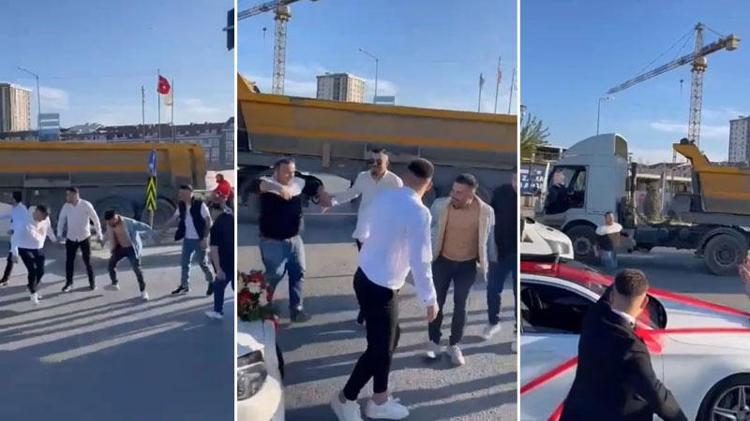 Sultangazi'de düğün konvoyundakiler yolu kapatıp horon tepti, seyir halindeki TIR şoförü de aracını yolda bırakıp horona katıldı. Seyir halindeki otomobilin ön kaputunun üzerinde oturarak yolculuk yapan kişi ise cep telefonu kamerasına yansıdı.