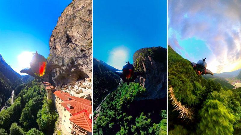 Wingsuit pilotu İrlandalı Michael Morann, Karadağ'ın Altındere Vadisi'nde 300 metre yükseklikte kayalar oyularak inşa edilen Sümela Manastırı üzerinden süzülerek ‘yarasa adam uçuşu’ gerçekleştirdi. Sporcunun atlayışı ve gökyüzünde yaklaşık 250 kilometre hıza ulaşıldığı anlar, aksiyon kameralarına yansıdı. Moran, daha sonra paraşütünü açıp Altındere Vadisi’ne indi.