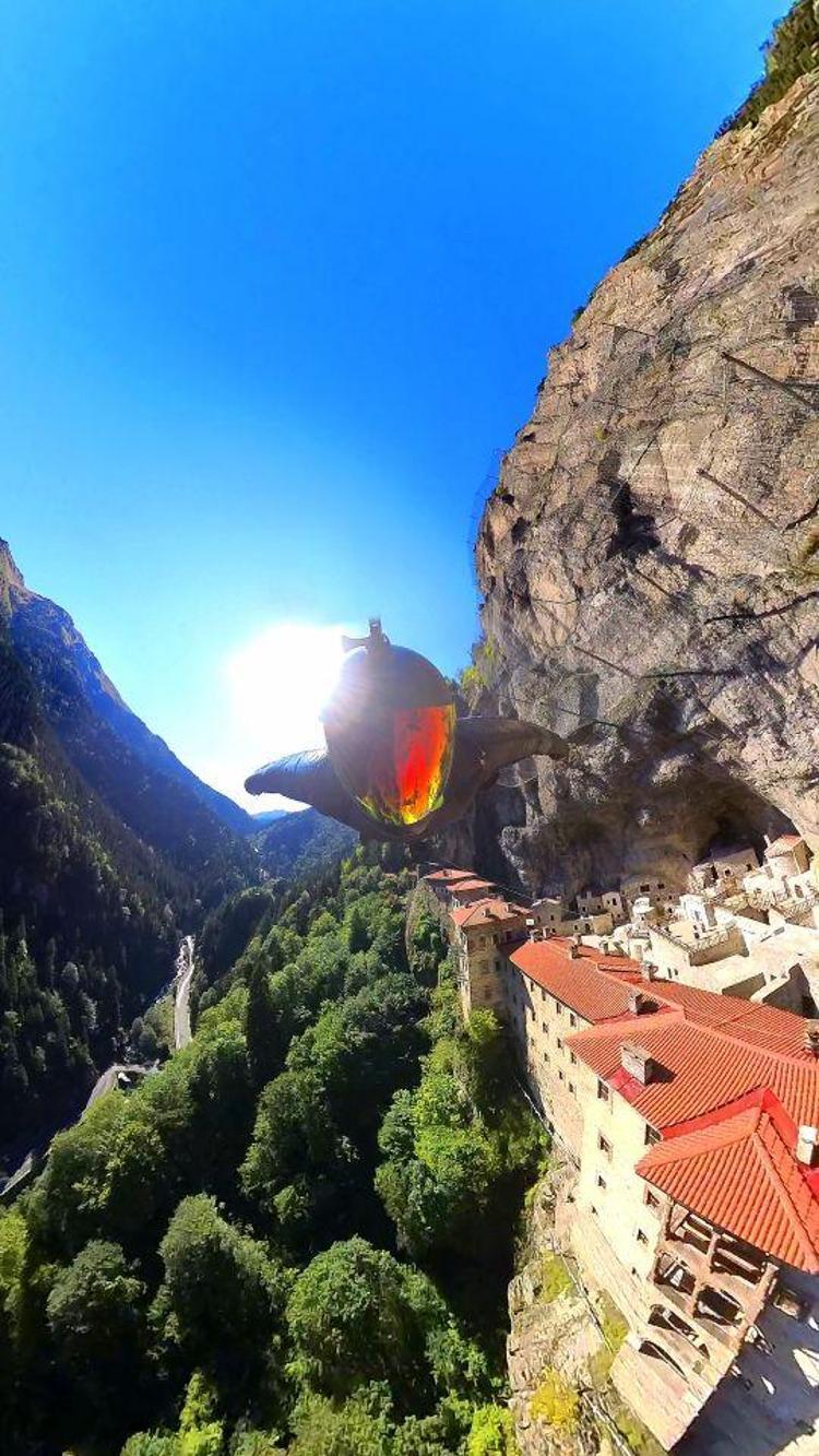 Türkiye'nin önemli tarihi ve inanç mekanlarından, yerli ve yabancı binlerce turistin geldiği, UNESCO Dünya Miras Geçici Listesi'nde yer alan, Trabzon'un Maçka ilçesi Karadağ eteklerindeki Sümela Manastırı, yarasa adam uçuşuna sahne oldu.
