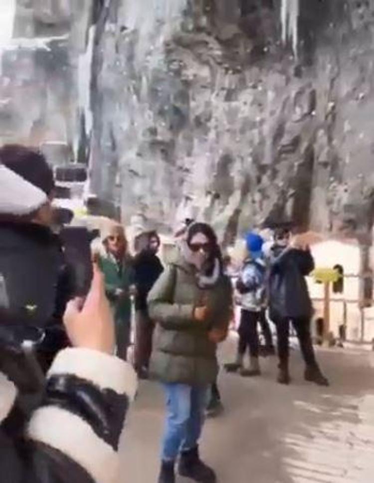 Görüntülerde, müziğe eşlik eden ekibin, manastırın farklı noktalarında dans ederek eğlendikleri anlar yer aldı.