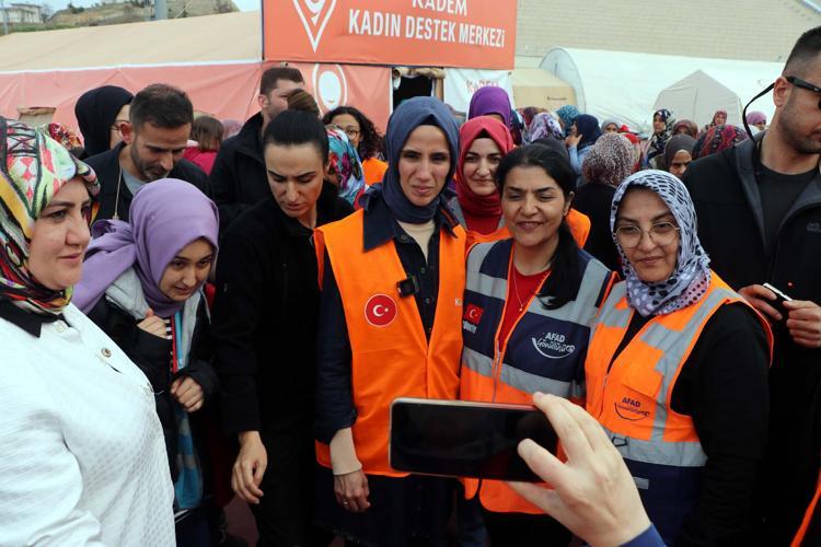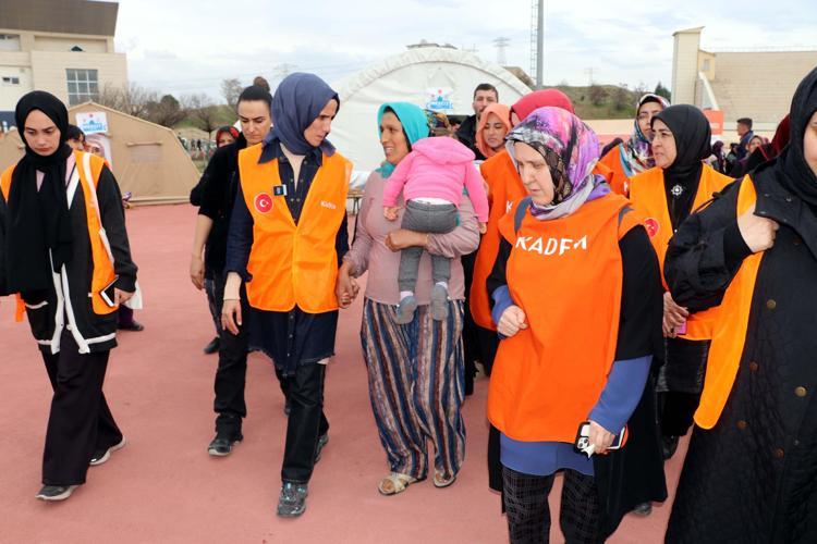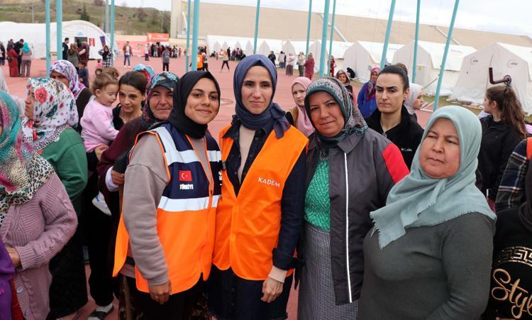 Kadın ve Demokrasi Derneği (KADEM) Mütevelli Heyeti Başkanı Sümeyye Erdoğan Bayraktar, Kahramanmaraş Sütçü İmam Üniversitesi kampüsünde bulunan çadır kentteki depremzedeleri ziyaret etti.