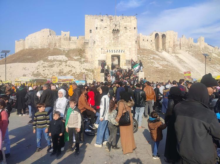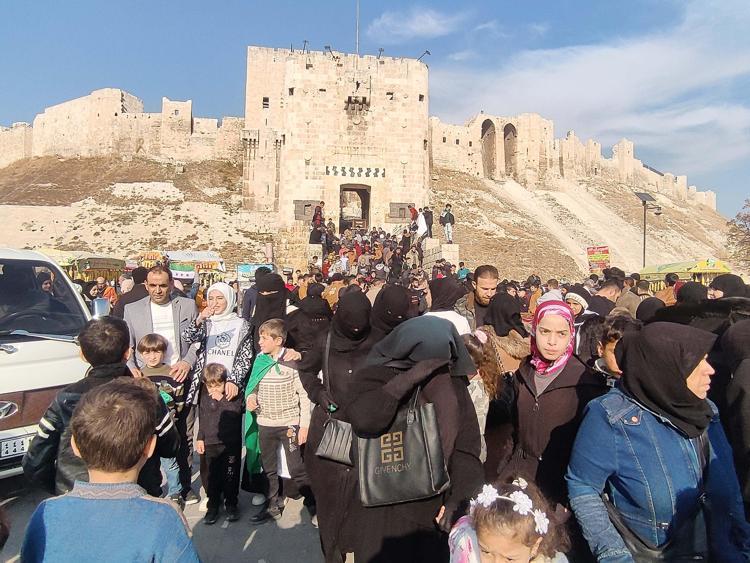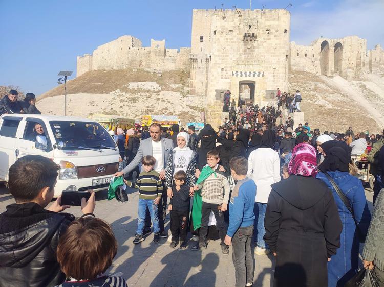 Her yaş grubundan binlerce kişi Halep Kalesi önünde birbirine sarılarak yeni dönemin mutluluğunu yaşıyor. Kentte yaşayan sivillerin yanı sıra binlerce kişi ise Suriye içindeki farklı bölgeler ve Türkiye’den yıllar sonra Halep’e geri döndü. İç savaşın başlamasının ardından rejim veya terör örgütlerinin baskısı nedeniyle Halep’ten ayrılmak zorunda kaldıklarını belirten Halepliler, yıllar sonra evlerine dönmenin ve hasret kaldıkları Halep Kalesini yeniden görmenin mutluluğunu yaşadıklarını ifade etti.