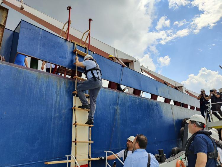 Tahıl yüklü gemi Razoni'de denetim