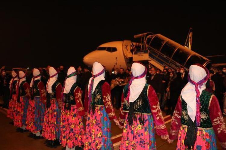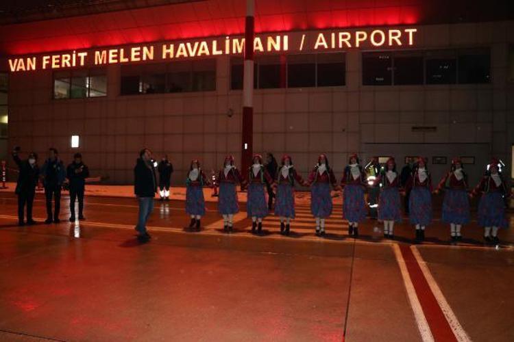 Tahran uçağı Van'da halay ve çiçeklerle karşılandı