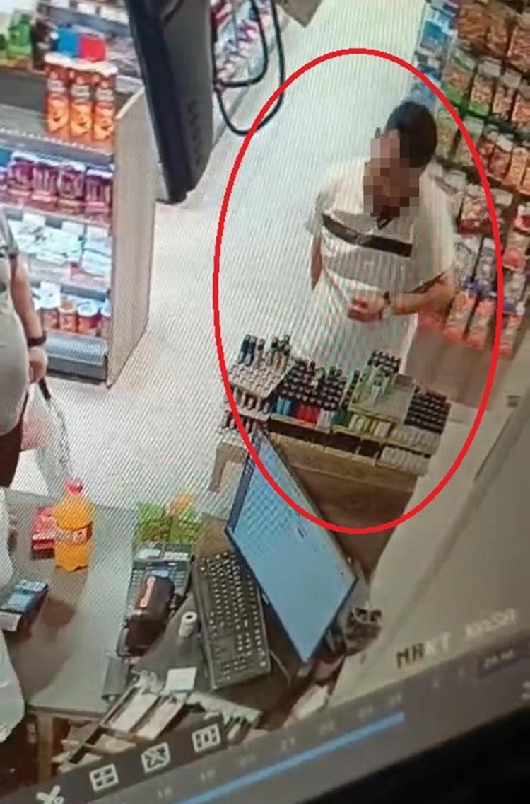 Şüphelinin markette alışveriş yaptığı görüntüler de ortaya çıktı.