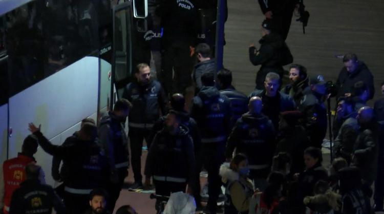 Haliç Metro Durağı önünde toplanan başka bir grup kadın daha Taksim'e yürümek istedi. Polis grubun yürüyüşüne izin vermedi.