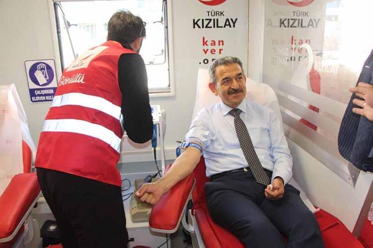 Vali Ekici, "Milletimizi kan vermeye davet ediyorum. Kızılay aracılığıyla her gün yüz binlerce hastaya kan ulaştırılıyor. Zor durumdaki insanlar için herkesin kan bağışında bulunması büyük önem taşıyor" diye konuştu.