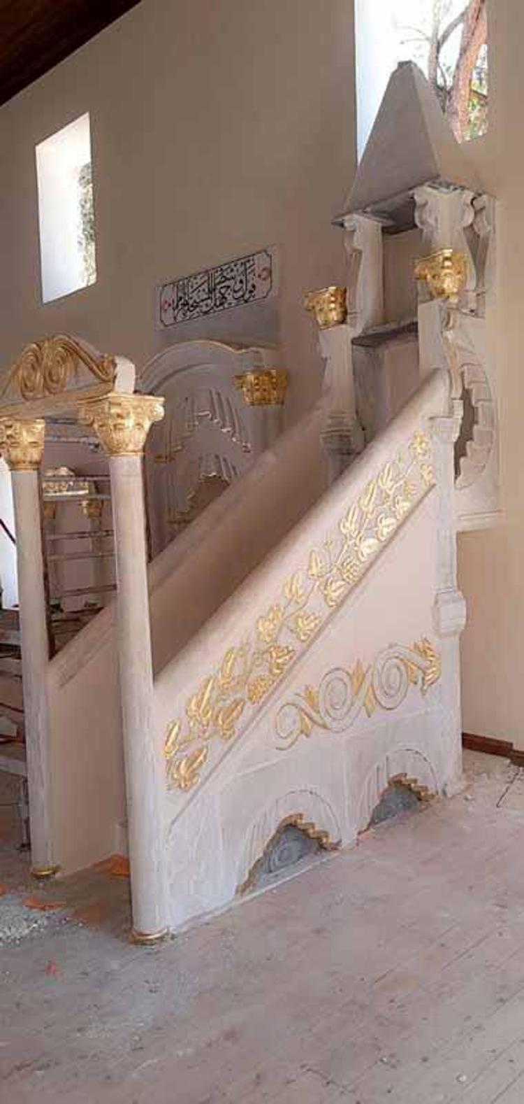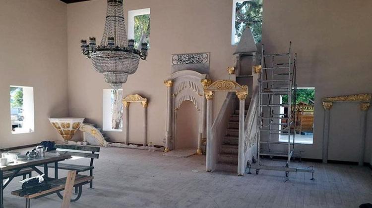 Tarihi camideki restorasyonda orijinal kök boyalar yerine altın varak kullanılmış