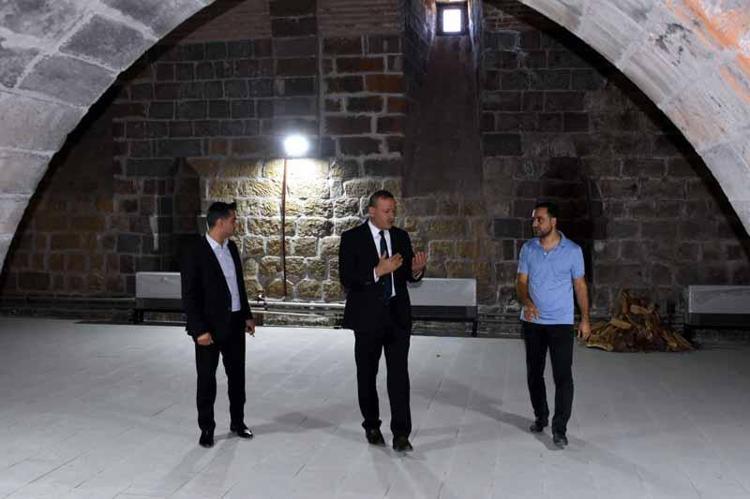 Bu handa daha önce bazı projelerin denemeleri yapılmış, bazı fonksiyonlarla kullanılmaya çalışılmış ancak sürdürülebilir bir noktaya getirilememiştir. Önemli onarım projeleri ile korunarak bugüne kadar getirilmiş. Daha önce yeme-içme mekanı olarak kullanılmaya çalışılmış, 2016 yılından sonra bu fonksiyonunu da kaybetmiş. Şu anda atıl durumda. Yaklaşık 3 yıl önce başlatılan yeni bir projelendirme ile burası Osmanlı-Selçuklu Kütüphanesi şeklinde düşünülmüş. Biz göreve geldikten sonra buranın çok fonksiyonel bir şekilde kullanılması için proje revizyonuna gittik. Sadece kütüphane olan projeyi, revize ederek diğer fonksiyonları da eklemek kaydıyla burayı bir 'İlham Enstitüsü' haline getirmeye çalışıyoruz" dedi.