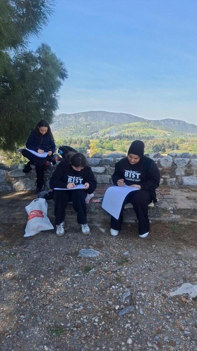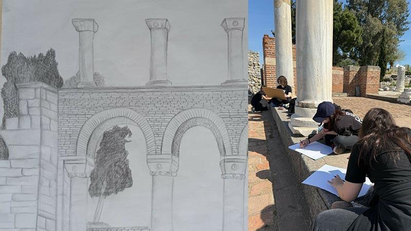 İzmir Selçuk Borsa İstanbul Şehit Ömer Halisdemir Anadolu Lisesi öğrencileri, 'Liselerde Bilim Uygulamaları' projesi ve 'Tarih İçinde Sanat' etkinliği kapsamında St. John Bazilikası ile Ayasuluk Kalesi'ni ziyaret edip, tarihi mekanların atmosferinden ilham alarak gördüklerini resme döktü.