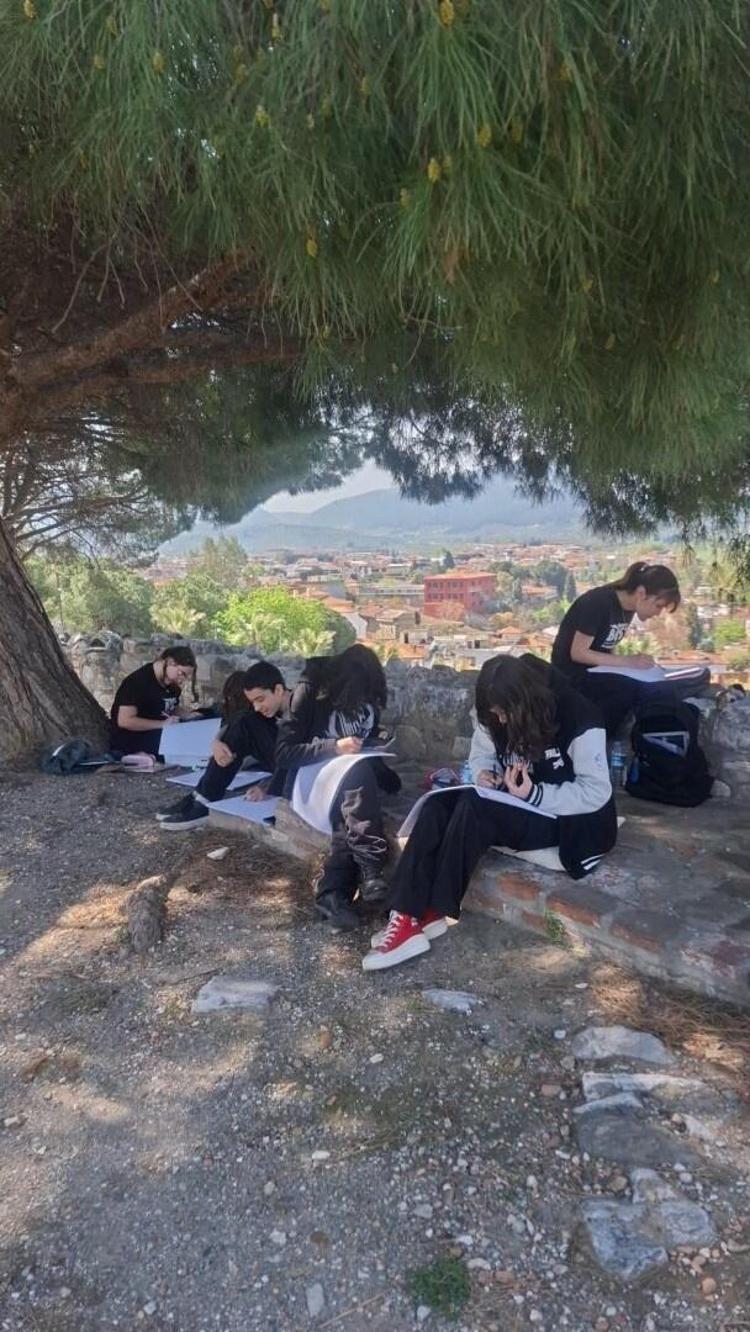İlk olarak St. John Bazilikası ve Ayasuluk Kalesi'ni ziyaret eden öğrenciler, ardından gördüklerini yerinde resmetti. Öğrencilere 2 arkadaşları da gitar ve keman çalarak eşlik etti.