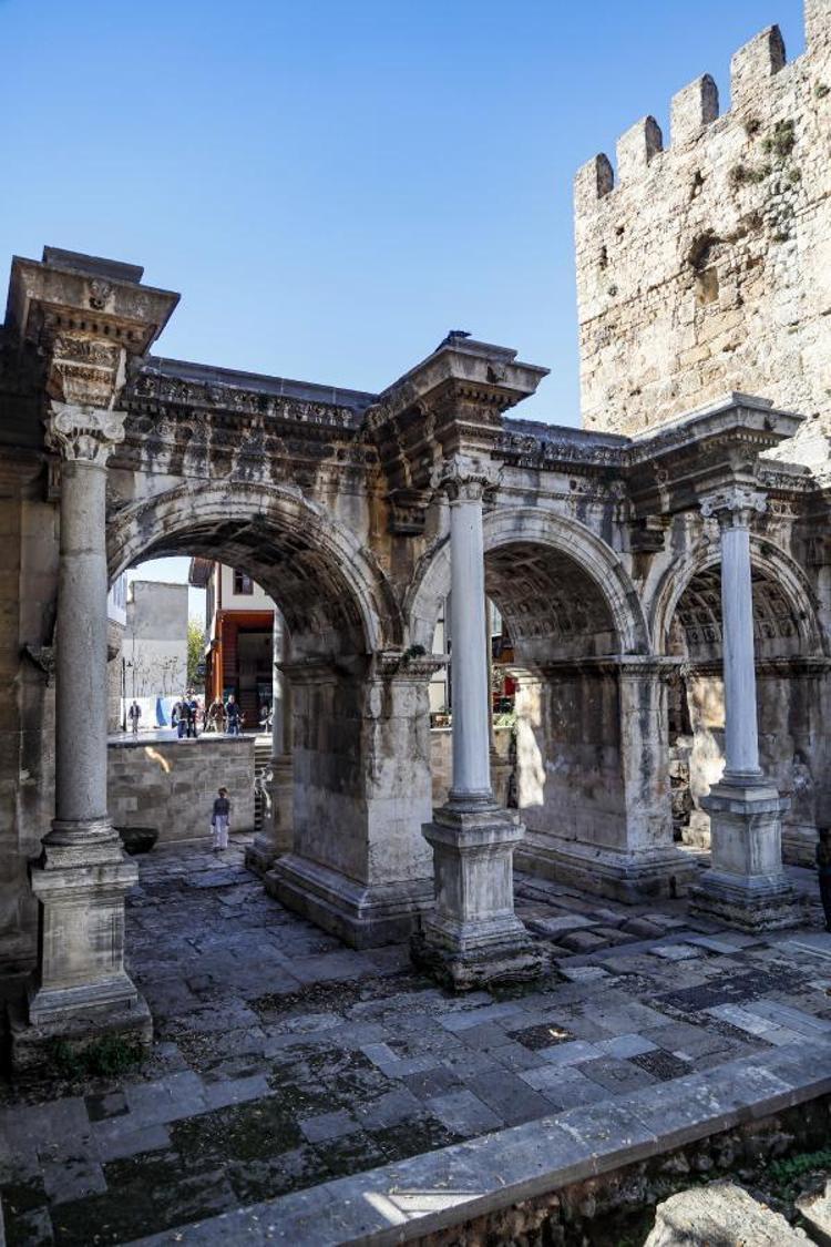 Roma İmparatoru Hadrianus'un 130 yılında Antalya'yı ziyareti onuruna, kenti çevreleyen sur üzerinde inşa edilen anıtsal zafer takı Hadrian Kapısı, turizm kenti Antalya'nın simge yerleri arasında bulunuyor.