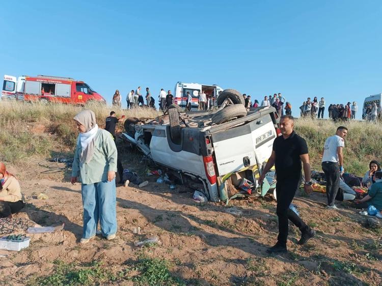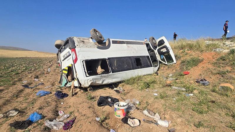Tarım işçilerini taşıyan minibüs devrildi: 15 yaralı