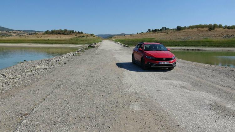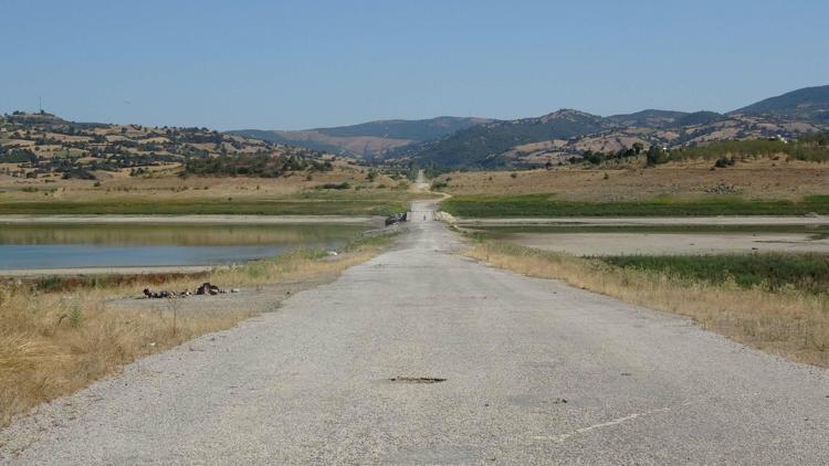Tarımsal sulamaya kapatılan barajda su seviyesi düştü, eski kara yolu ortaya çıktı