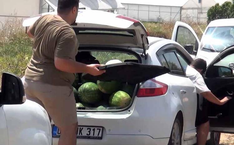 Tarladaki karpuzları vatandaşa ücretsiz dağıttı