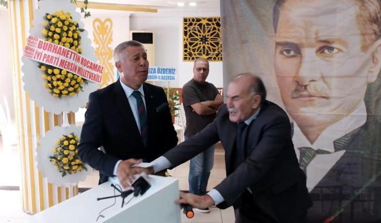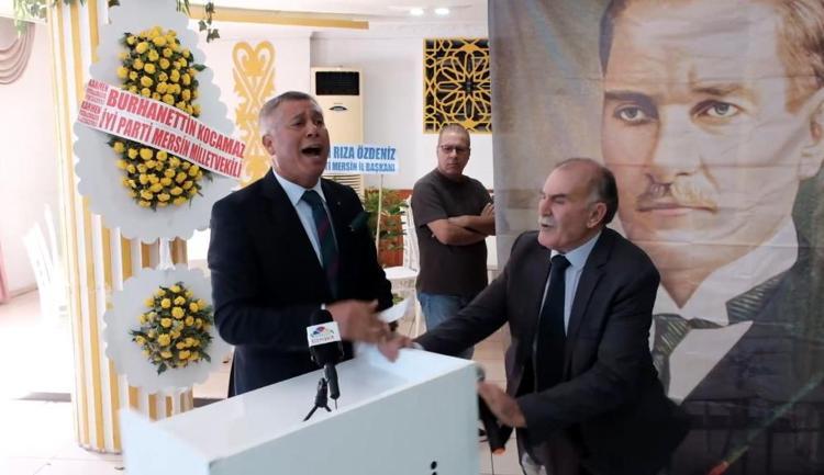 Mersin'de İYİ Parti Tarsus İlçe Kongresi'nde eski İlçe Başkanı Daniel Mercan'ın konuşma talebi kabul edilmeyince arbede yaşandı. Partililerin araya girmesiyle gerginlik büyümeden önlendi.