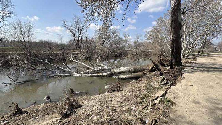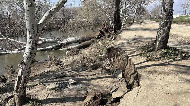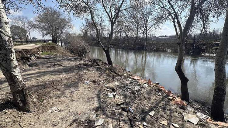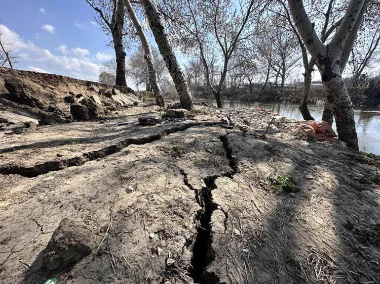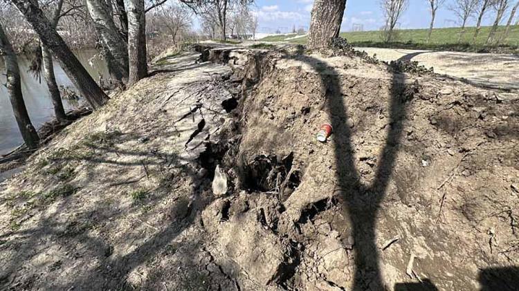 Taşkın yaşanan Tunca Nehri kıyısında çatlak ve göçükler oluştu