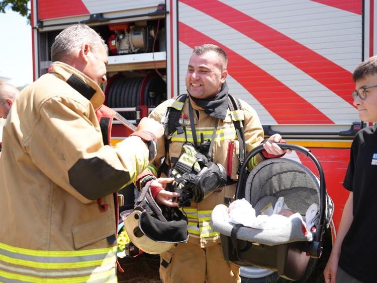 İtfaiye Müdürü Mehmet Ali Kahraman'ın dolabın içerisine bakmalarını istediği itfaiye erleri, dolabın kapağını açtıklarında kendi çocuklarının fotoğraflarını ve Babalar Günü ile ilgili yazdığı mesajları gördü. İtfaiyeci kıyafeti giyen çocuklar ise ellerinde çiçeklerle babalarının yanına gitti. Karşısında çocuklarını gören itfaiyeciler, duygu dolu anlar yaşadı. Bir itfaiyecinin eşi de pusette bebeklerini getirdi.