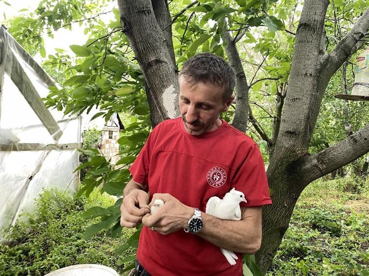 Civcive ‘Pamuk' adını veren Şekerli, “Güvercinim yumurtaları bir türlü çatlamadı. Yumurtalar bozuldu ben de attım. Güvercin oturmaya devam edince, çok stres yaptı. Ben de ‘oyalansın’ diye altına tavuk yumurtası koydum. Aradan bir zaman geçti kümesten civciv sesi geldiğini duydum. Bir baktım güvercinin altında beyaz bir civciv var. Civcive, annelik duygusuyla sahip çıkıyor. Tabi bu beni hem sevindirdi hem de düşündürdü. ‘Civcivin beyaz olmasında acaba güvercinin oturmasının bir etkisi oldu mu’ diye düşündüm. Bunu gördüğümde güvercin zaten onu kurutmuştu, gayet sağlıklı görünüyordu. Ondan sonra bende tabi müdahale ettim, şekerli su verdim biraz, ağzına yem verdim. Güvercinler normalde yavrularını ağzıyla besliyor ama civcive ilk anda ne yaptı görmedim” dedi.