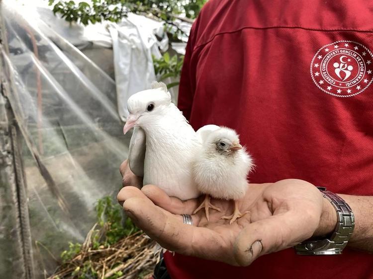 Gümüşhane'de çiftçi Erdinç Şekerli, kümeste kuluçka sürecinde kendi yumurtalarını çatlatamayan güvercinin altına tavuk yumurtası koydu. 21 gün sonra yumurta çatlarken, güvercin çıkan civcivi sahiplendi. Civcive ‘Pamuk' ismini veren Şekerli, “Anneliğin çok kutsal olduğunu burada da görmüş olduk” dedi.