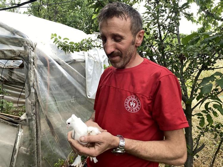 Merkeze bağlı Pirahmet köyünde tarım ve hayvancılıkla uğraşan Erdinç Şekerli’nin hobi olarak arkadaşının hediyesiyle beslediği güvercini kuluçkaya yattı ancak yumurtaları çatlamadı. Şekerli, kuluçka sürecinde strese girip, kendi yumurtalarını çatlatamadığını belirttiği güvercinin altına tavuk yumurtası yerleştirdi. 21 gün sonra yumurta çatlayıp, civciv çıktı. Şekerli, güvercinin çatlattığı yumurtadan çıkardığı beyaz renkte civcivi sahiplendiğini görünce şaşkına döndü.