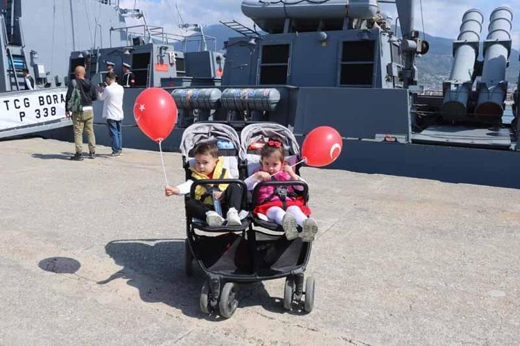 Türk Deniz Kuvvetleri'ne ait, yaklaşık 62 metre boyunda ve 9 metre enindeki Kılıç sınıfı hücumbotlardan TCG BORA (P-338), 23 Nisan Ulusal Egemenlik ve Çocuk Bayramı kapsamında Antalya'nın Alanya ilçesinde ziyarete açıldı. Aileler ve çocuklar, savaş gemisini yakından inceleme fırsatı buldu.