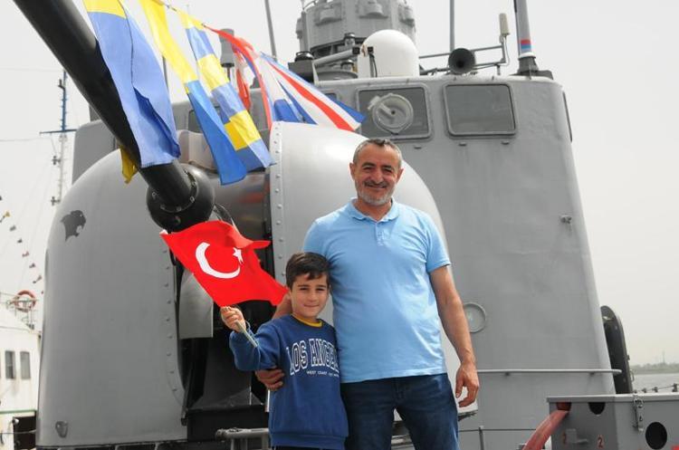 7 yaşındaki oğlu Poyraz ile gemiyi gezen emekli işçi Alper Bingöl, "Önce oğlumla beraber lunaparka gidelim, sonra askeri yerleri gezelim diye plan yaptık. Özellikle gemilere, askeri gemilere çok merakı var. Legolardan yapmaya çalışıyor. Canlısını görmek istedi, buraya geldik. Ülkemizin hem gücünü görmek istedik hem de çocuğumu gezdirmek istedim. O da askeri gemiyi görmek istedi. Gayet mutluyum" dedi.