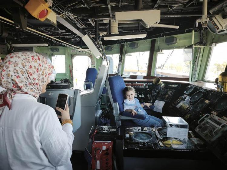 Ziyaretçiler geminin çeşitli bölümlerini gezerek savaş gemisini yakından görme imkanı buldu. Aileler hatıra fotoğrafı çektirirken, görevli personel de gemi hakkında ziyaretçilere bilgi verdi. Görevliler gemiyi ziyaret eden çocuklara bayrak ve balon hediye etti.