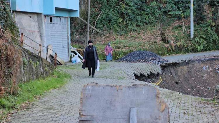 Bir şey olsa korkuyoruz, rüzgar esse korkuyoruz. Mesela araba çıkmıyor, cenazemiz olduğunda cenazeyi uzaktan dolaştırdılar. Çok çilemiz var. Bize Allah için yardım etsinler. Korkudan gece uyuyamıyorum. 10-15 gün önce geldiler, 'Yapacağız' dediler. Dediler, dediler de bir haber yok. Yardım bekliyoruz. İnşallah gelirler de yüzümüzü güldürürler. Ulaşım sağlayamıyoruz, hasta olsan bir yere gidemiyorsun, araba çağıramıyorsun. Yükümüz gelse getiremiyoruz. Bu halde kaldık. 1 ay önce duvarlar da yukarıdaydı ta nereye indi. Burada ağaçlar vardı, ağaçlar kayboldu. Sürekli aşağıya kayıyor" dedi.