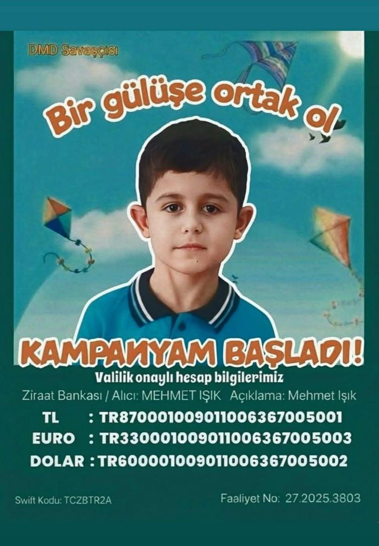 Gaziantep'in Araban ilçesinde yaşayan Fahri-Gülkız Işık çiftinin ikinci çocukları Mehmet Işık'a (7), 3 yaşında Duchenne Musküler Distrofi (DMD) teşhisi kondu. Tek hayali okula gitmek olan Mehmet için valilik onaylı yardım kampanyası başlatılırken, baba Işık, "Şu an kendi imkanlarımızla yapabileceğimiz hiçbir şey yok. Oğlum şu an okula gidemiyor. Diğer yaşıtları gibi okula devam etmesini istiyorum" dedi.