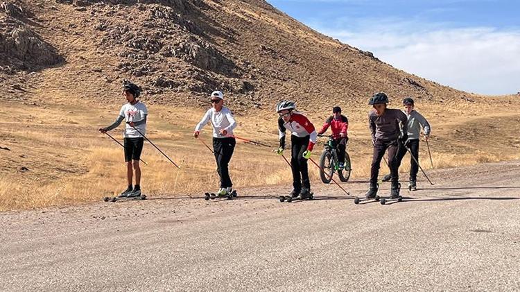 Tekerlekli kayak takımı, köy yolunda Balkan Şampiyonası'na hazırlanıyor