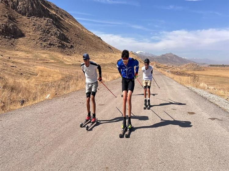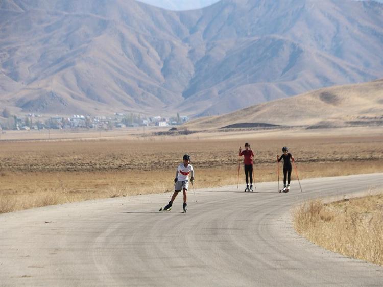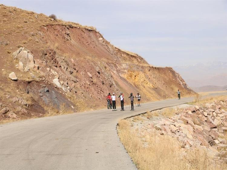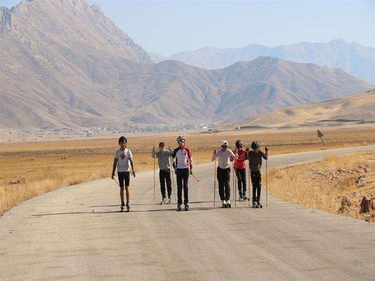 Hakkari'nin Yüksekova ilçesinde 60'ı kız toplam 120 lisanslı sporcunun yer aldığı Yüksekova Tekerlekli Kayak Takımı, köy yolunda antrenman yaparak hem Tekerlekli Kayak Şampiyonası'na hem de Balkan Şampiyonası'na hazırlanıyor.