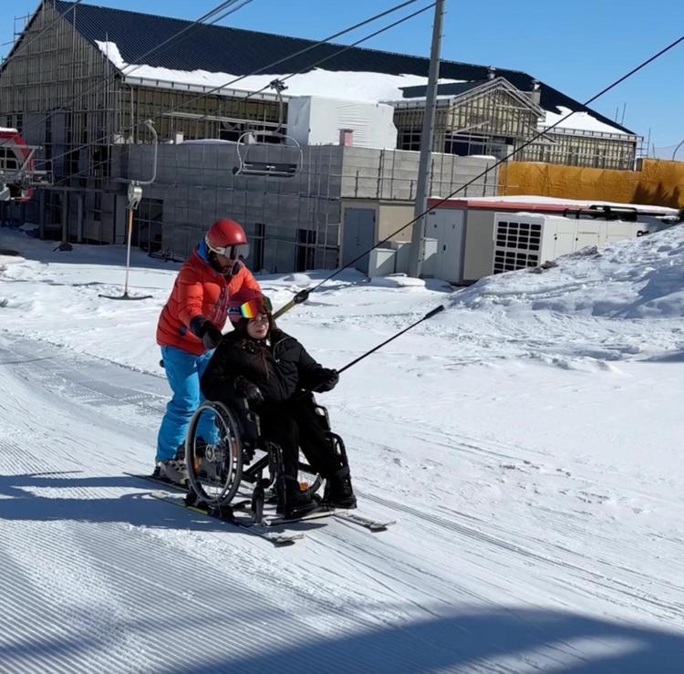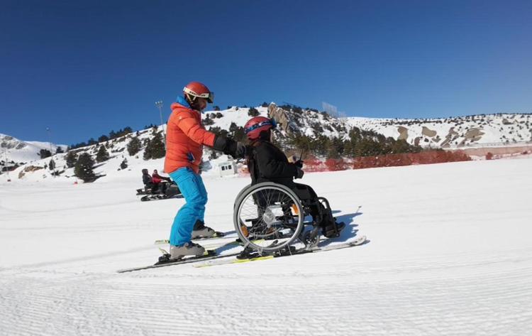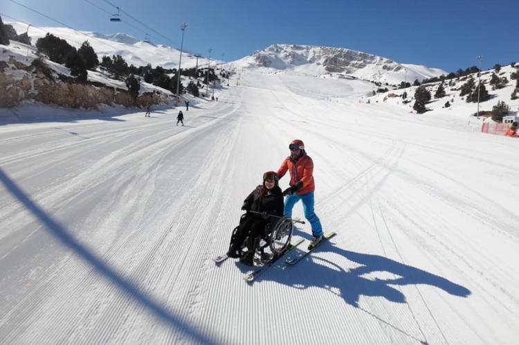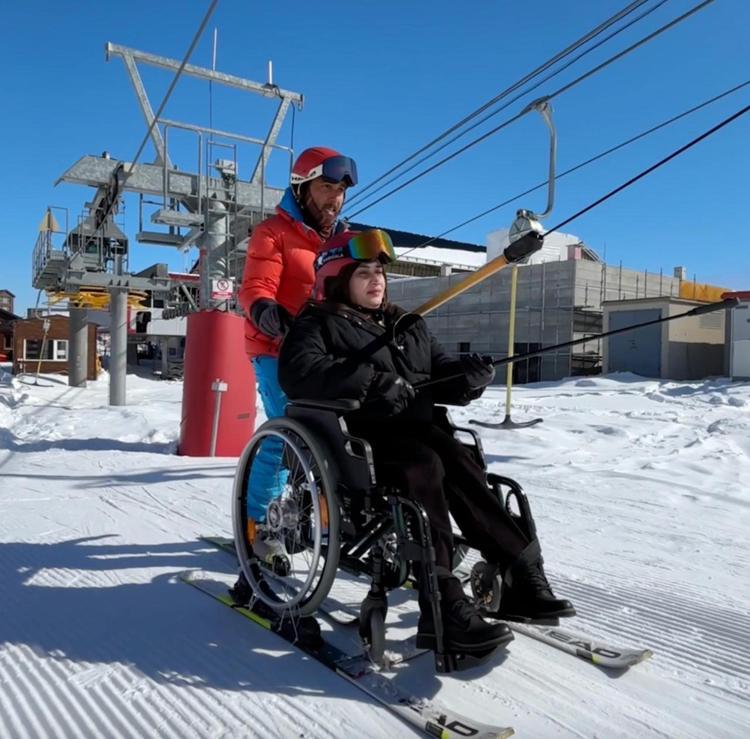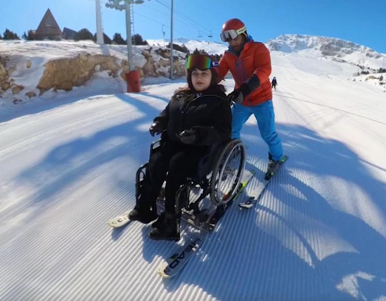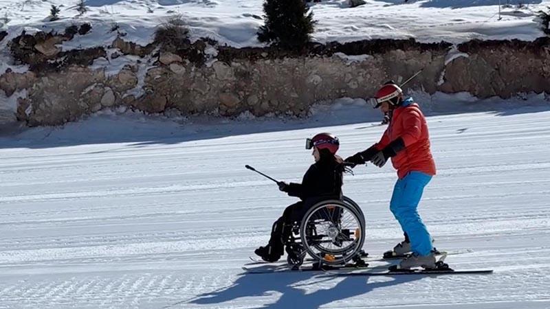 Tekerlekli sandalyede kayak yapma hayalini gerçekleştirdi