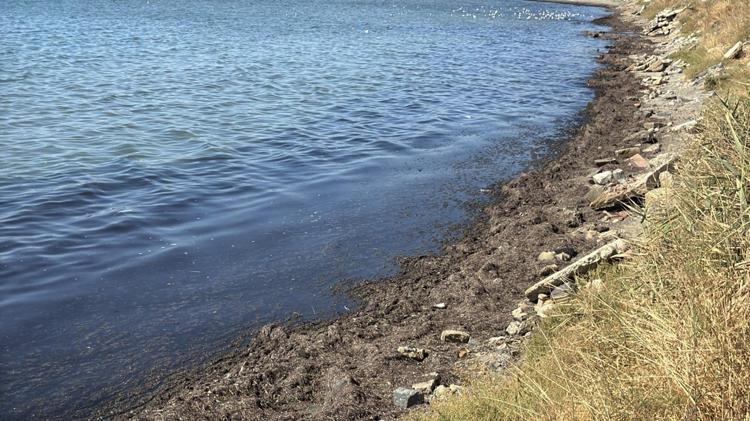 Marmara Denizi'nde 2 gün etkili olan poyrazın ardından Tekirdağ'ın Süleymanpaşa ilçesi sahil kesimi yosunla kaplandı.