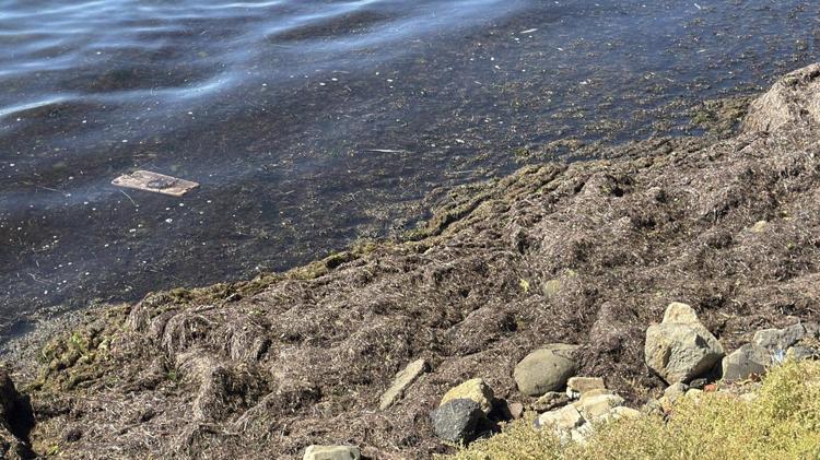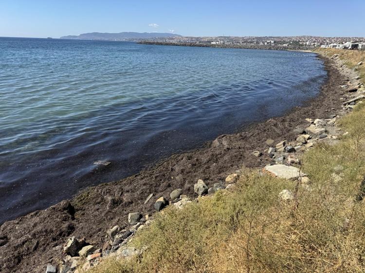 Marmara Denizi'nde etkili olan poyrazın ardından Tekirdağ'ın Süleymanpaşa ilçesi sahili yosunla kaplandı.