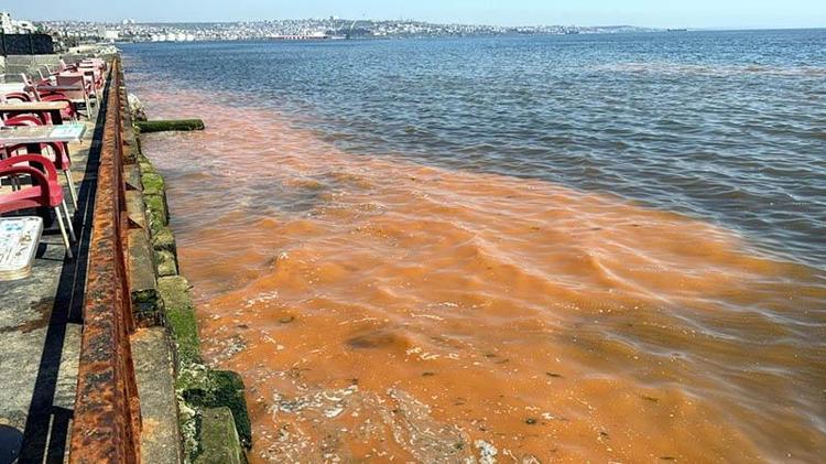 Tekirdağ sahilinde alg patlaması nedeniyle deniz turuncu renge büründü