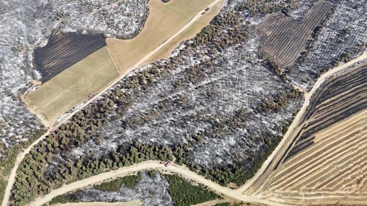 Tekirdağ yangınında Çanakkale'de zarar gören alanlar dron ile görüntülendi
