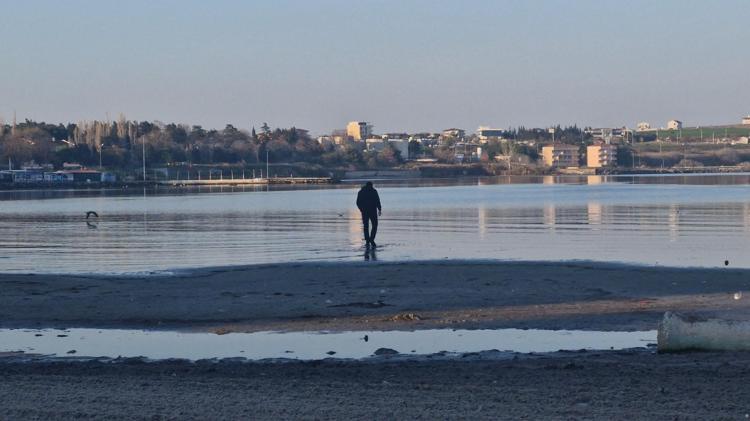 Tekirdağ’ın Marmara Ereğlisi sahilinde Marmara Denizi, kıyıdan yaklaşık 20 metre çekildi.