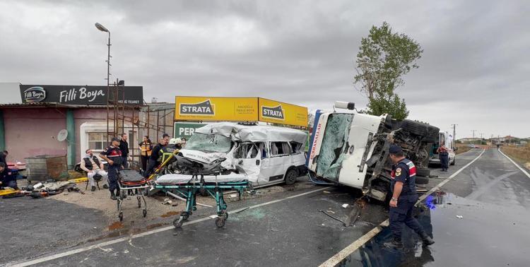Tekirdağ'da kamyon ile işçi servis minibüsü çarpıştı: 3 ölü, 9 yaralı