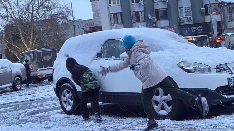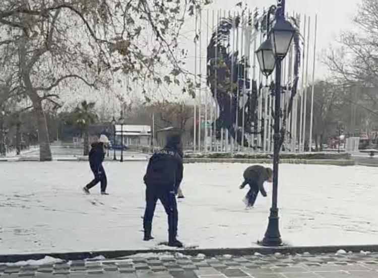 Tekirdağ'da sabah saatlerinde ekili olan kar yağışı bazı bölgeleri beyaza bürüdü. Okulların tatil edildiği kentte, sahil dolgu alanında buluşan bir grup çocuk kar topu oynayarak eğlendi. Bu sırada polis noktasında görevli bir polis memuru da çocuklarla birlikte kar topu oynadı. O anların bir kişi tarafından cep telefonuyla kaydedilerek paylaşıldığı görüntüler, sanal medya hesaplarında yoğun ilgi gördü.