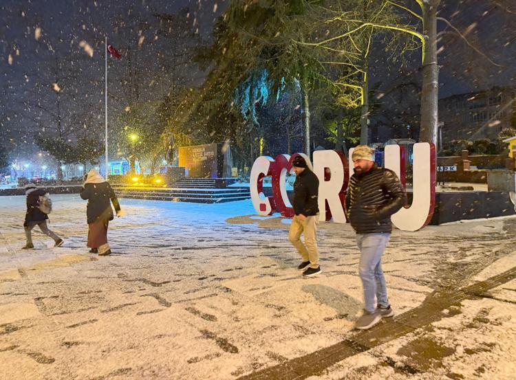 Kar yağışının etkili olduğu Çorlu ilçesinde ise okulların tatil edilmesini fırsat bilen çocuklar, Cumhuriyet Parkı'nda toplandı. Burada kartopu oynayan çocuklar kardan adam yaptı, karlar üzerlerinde yuvarlanarak eğlendi.