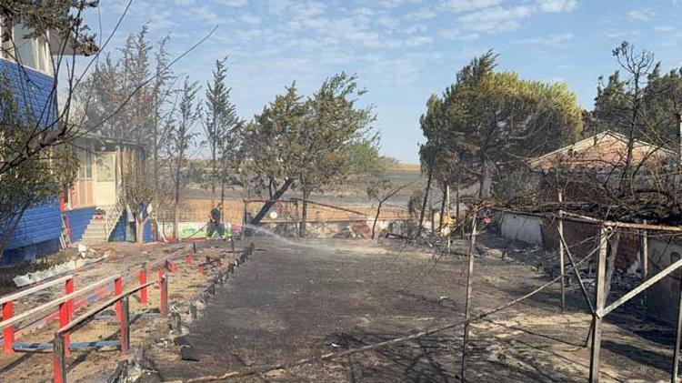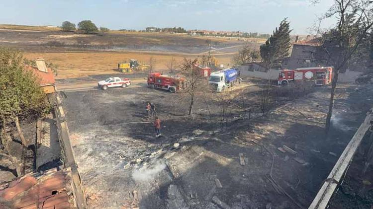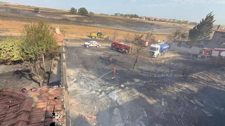 Tekirdağ'da ot yangınında alevler evlere sıçradı