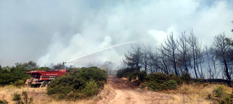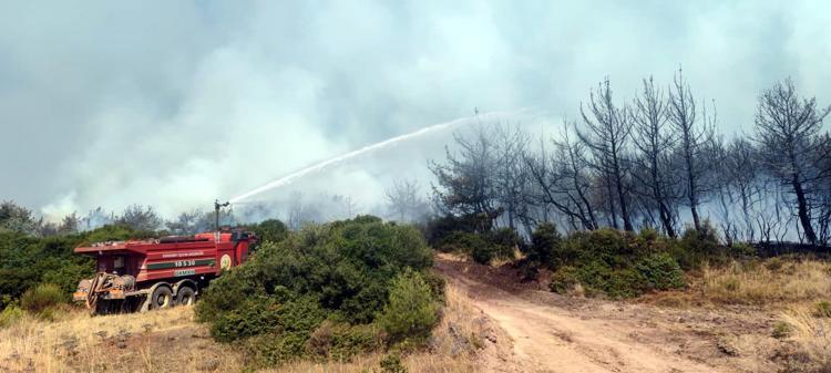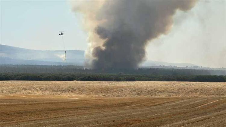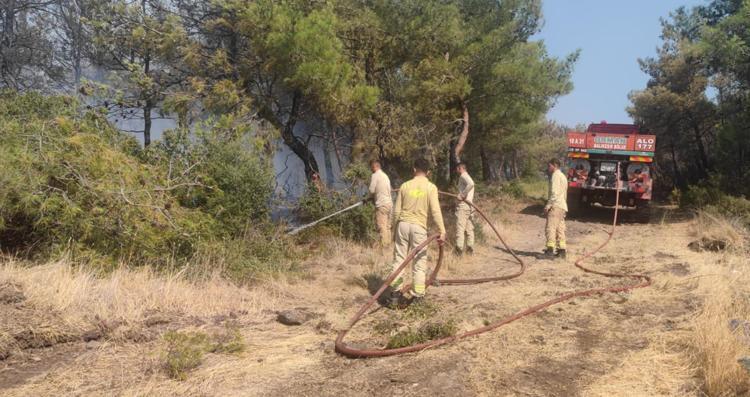 Tekirdağ'ın Şarköy ilçesinde dün çıkan, rüzgarın da etkisiyle geniş bir alana yayılan orman yangına sabahın ilk ışıklarıyla havadan müdahale yeniden başladı. Ekiplerin yangına müdahalesi sürüyor.