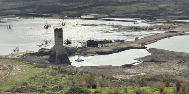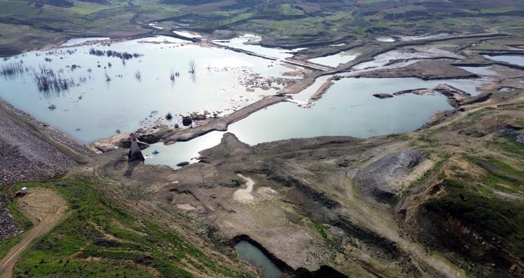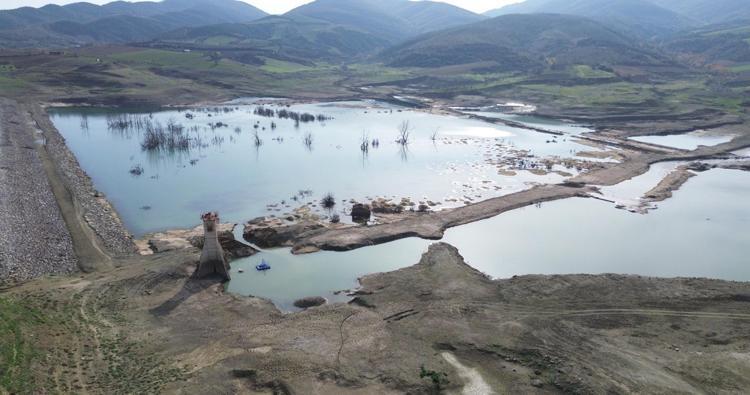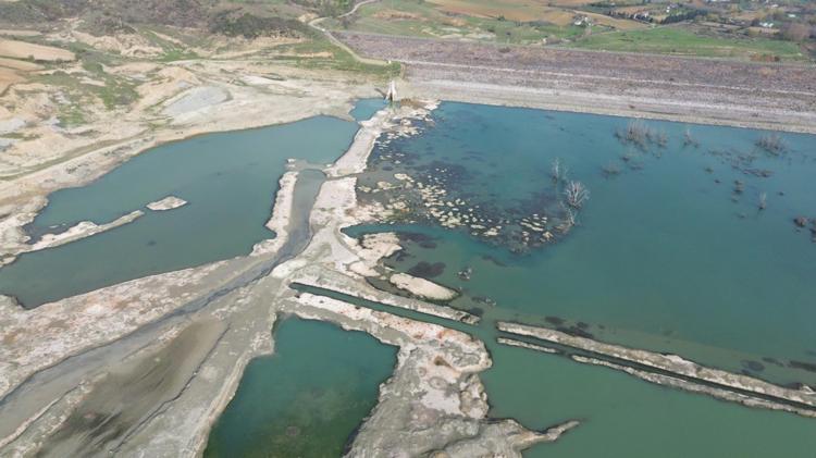 Tekirdağ'ın 210 bin nüfuslu merkez ilçesi Süleymanpaşa'nın içme suyunu karşılayan Naip Barajı, kurak ve yağışsız geçen yaz ayları nedeniyle kuruma noktasına geldi. Su seviyesinin yüzde 1'in altına düştüğü barajda, ağaç kökleri ortaya çıktı, adacıklar oluştu. Kuruyan kısımlarda su altında bulunan yapılar ortaya çıktığı baraj dronla görüntülendi.