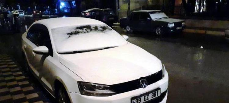 Saray ilçesinde yağışla birlikte araçların üzeri ve yerler beyaza büründü.