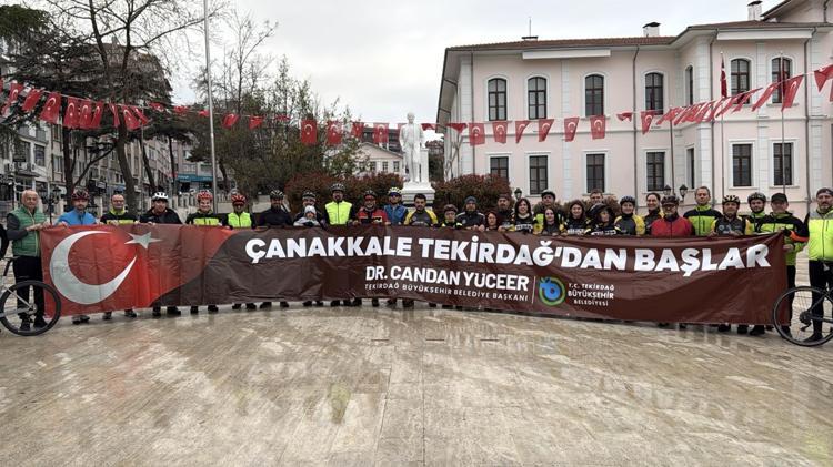 Tekirdağlı bisikletçiler, 18 Mart Şehitleri Anma Günü Deniz Zaferi'nin 111'inci yıl dönümünde şehitleri anmak üzere Çanakkale'ye pedal çeviriyor. Tekirdağ Valiliği önündeki Atatürk Anıtı'nda toplanan 40 bisikletli, 'Çanakkale, Tekirdağ'dan başlar' yazılı pankart açtı.
