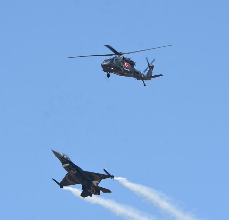 TEKNOFEST'te F-16 savaş uçağı ve helikopterle kol uçuşu gösterisi