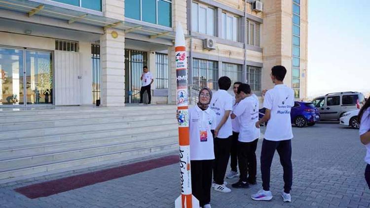 Gecemizi gündüz ettik, başarısız da olduk, yer geldiğinde roketimizin gözümüzün önünde parçalandığı da oldu ama biz pes etmedik. Yaz tatilinde çok yoğun bir çalışma programımız vardı, tatil yapmadık. Her gün buraya gelip roketle çalıştık. Roketi yaptık, tabii bu bizim için tutku olduğu için her günümüz çok eğlenceli geçiyordu. Roketimiz 1670 metre uçtu ve tam kurtarma gerçekleştirildi. Roketin her bir parçasını sağlam bir şekilde bulduk. TEKNOFEST Roket Yarışması’nda Türkiye 4’üncüsü olduk ve ‘En İyi Özgün Tasarım’ ödülüne layık görüldük. Roketimizin ismi ‘Marifet’. Marifet bir uzay roketi olarak tasarlandı. Tabii ki şu an için bir model roket, çünkü lisede olduğumuz için. Gelecekte çok daha iyilerini yapacağımıza inanıyorum” diye konuştu.